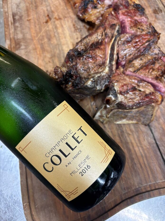 L’annata 2016 in Champagne è stata preceduta da un inverno e una primavera piovosi che hanno rallentato la crescita delle viti, seguiti da un’estate calda e soleggiata che ha favorito una maturazione completa delle uve. Un bel contrasto climatico che ha portato a vini ricchi, maturi e con una notevole profondità aromatica come si riflette in questo 2016 di Champagne Collet, a leggera maggioranza di pinot nero. Ancora in fase giovanile ma già di bel carattere. Note belle e intriganti da confettura di frutta quasi tropicale, lamponi, rabarbaro, pepe bianco, muschiato, soavità floreale di zagara e biancospino in una bella spinta dello chardonnay. Sorso di intensità e succulenza già belle definite, componente umami sapidità iodio e salsedine davvero percepibili con anche frutta secca e arachidi. Finale che spinge disseta e stuzzica, un grande vino e un grande champagne da bistecca alla fiorentina.
