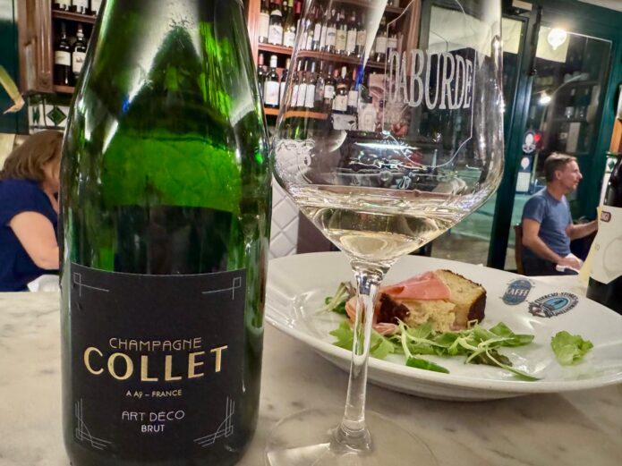 Lo champagne di ingresso della maison Collet mostra lo stile della casa che è fatto di bella eleganza maschile con levità ma anche una dose di intensità non banale. Note di lamponi, more, ribes rosso, tabacco, succo di bergamotto, spezie esotiche ma anche la classica zagara, sorso con frutto gustoso, bella croccantezza ma persistenza e vinzosità percepite che lo rendono ottimo per pasteggiare. Da noi con torta di caprino e fichi e prosciutto toscano si è rivelato ottimo aperitivo ma non solo.