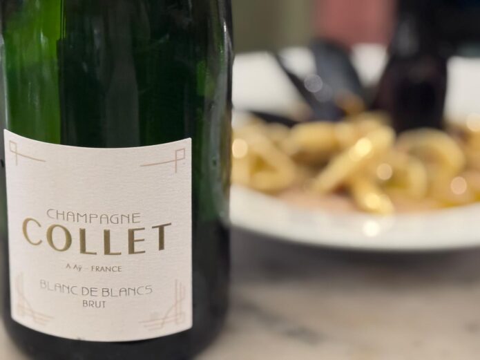 Il bianco di chardonnay in purezza di casa Collet, casa fortemente radicata ad Ay e al pinot nero, si rivela una bellissima sorpresa di acidità e gessosità da grandi cru della Côte des Blancs ma anche di frutto e stile Montagne. Limoni, arancio, mandarino, lieve tocco tropicale poi anche note di sottobosco, spezie, miele di tiglio, acacia e rosmarino. Bello il comparto di pasticceria e speziatura che lo completano nel bellissimo finale. Ottimo in aperitivo e molto versatile a tavola, da noi su Pasta fagioli con le cozze è andato alla grande.