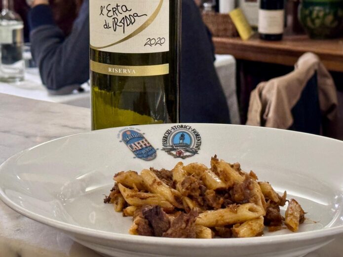 Diego Finocchi si è affacciato relativamente da poco sul palcoscenico del Chianti Classico ma i vini dell’Erta di Radda sono ormai tra i protagonisti del territorio. Diego ha saputo ben sfruttare i cambiamenti del clima e delle stagioni e ha mostrato personalità e costanza nel realizzare anno dopo anno vini di una grande godibili. LA sua riserva nasce da una singola vigna su suolo molto ferroso ed è in effetti impossibile degustare questo vino senza unire al bellissimo agrumato rosso e succulenta di frutta scura una nota ematica rugginosa che prosegue al gusto. Il sorso è di bellissima materia e tannino di giusta potenza e definizione e la sua eleganza lo rende ottimo anche su un primo piatto, magari una pasta al sugo scappato di Paolo Gori in trattoria , ma ovviamente il suo massimo lo da su carni rosse alla griglia e stracotti.