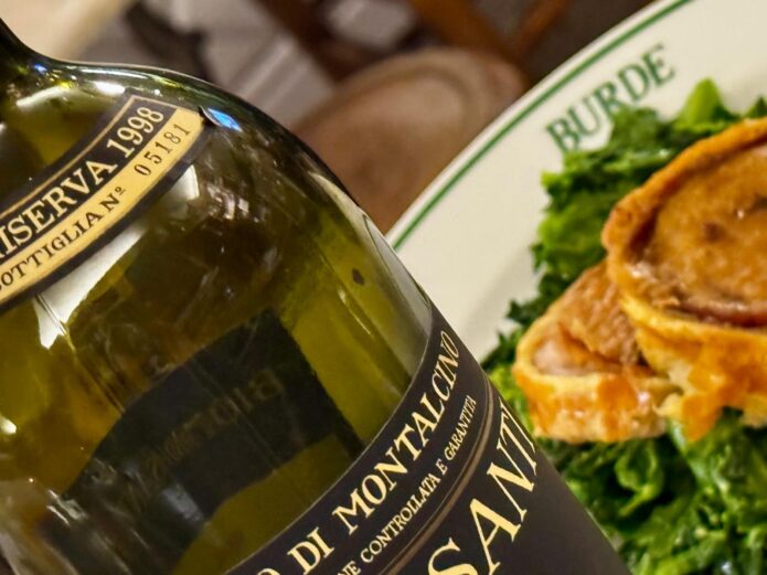 Anche qui una fase evolutiva secondo me ottimale. Io non sono per i vini veramente portati all’eccesso. Questo secondo me ha tutto il fascino: quella nota un po’ anche un po’ di goudron, un po’ di tartufato, un po’ appunto catramosa, di sottobosco, di radice, humus, che hanno i grandi Brunello in evoluzione. Ma mantiene ancora una bella nota fresca, fruttata, che secondo me nel vino, quando si perde quella nota, è veramente… è certo. E qui contribuisce l’annata.
